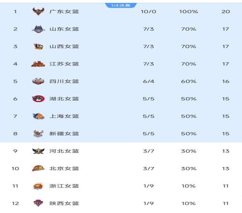豪取十连胜!杨舒予率领广东女篮打出高水平,WCBA女篮积分榜出炉
